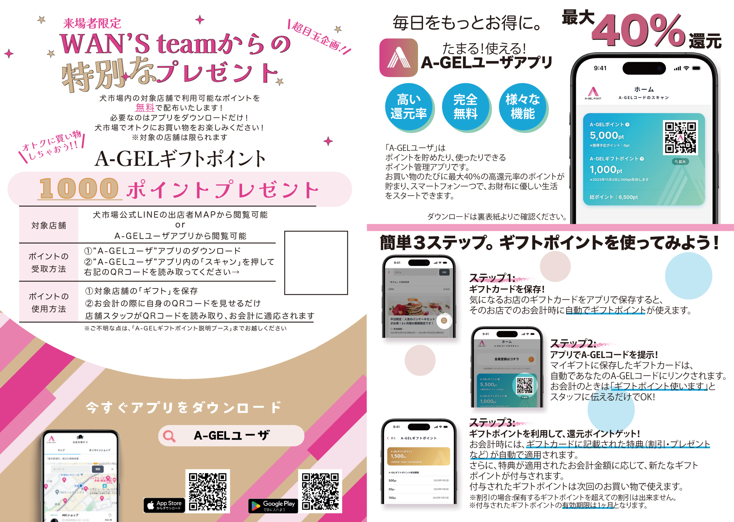 この度、「犬市場 夜市」よりA-GELギフトポイントが導入となります。