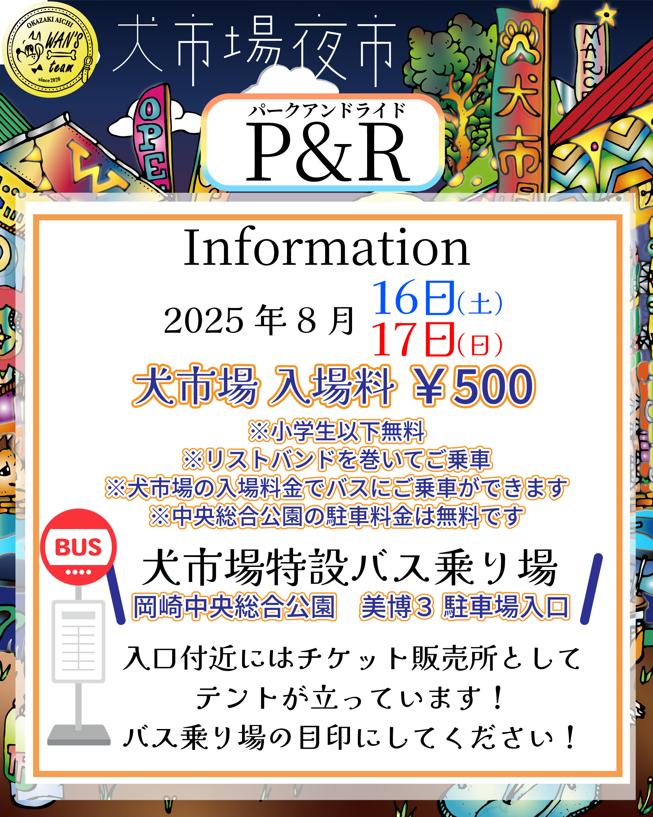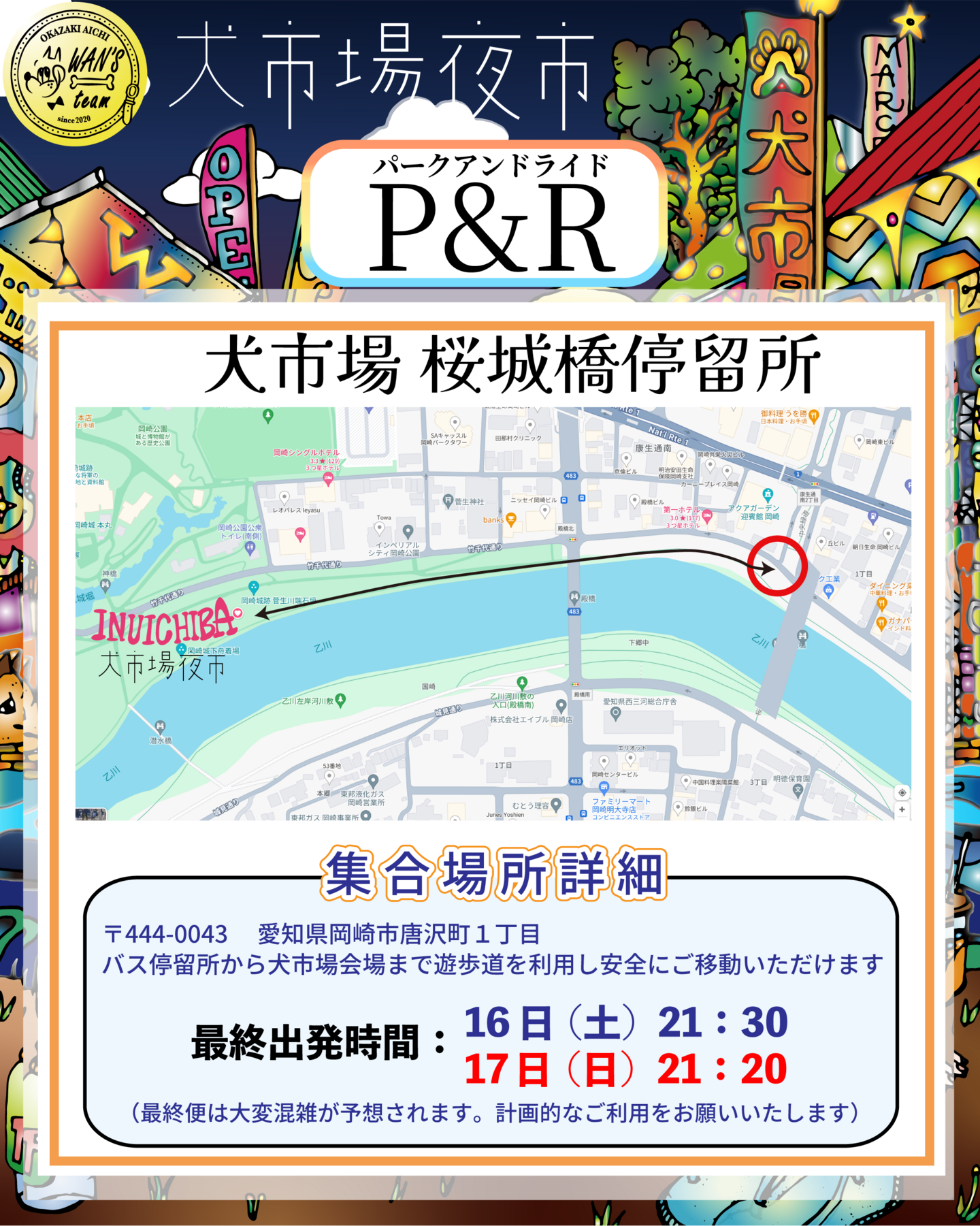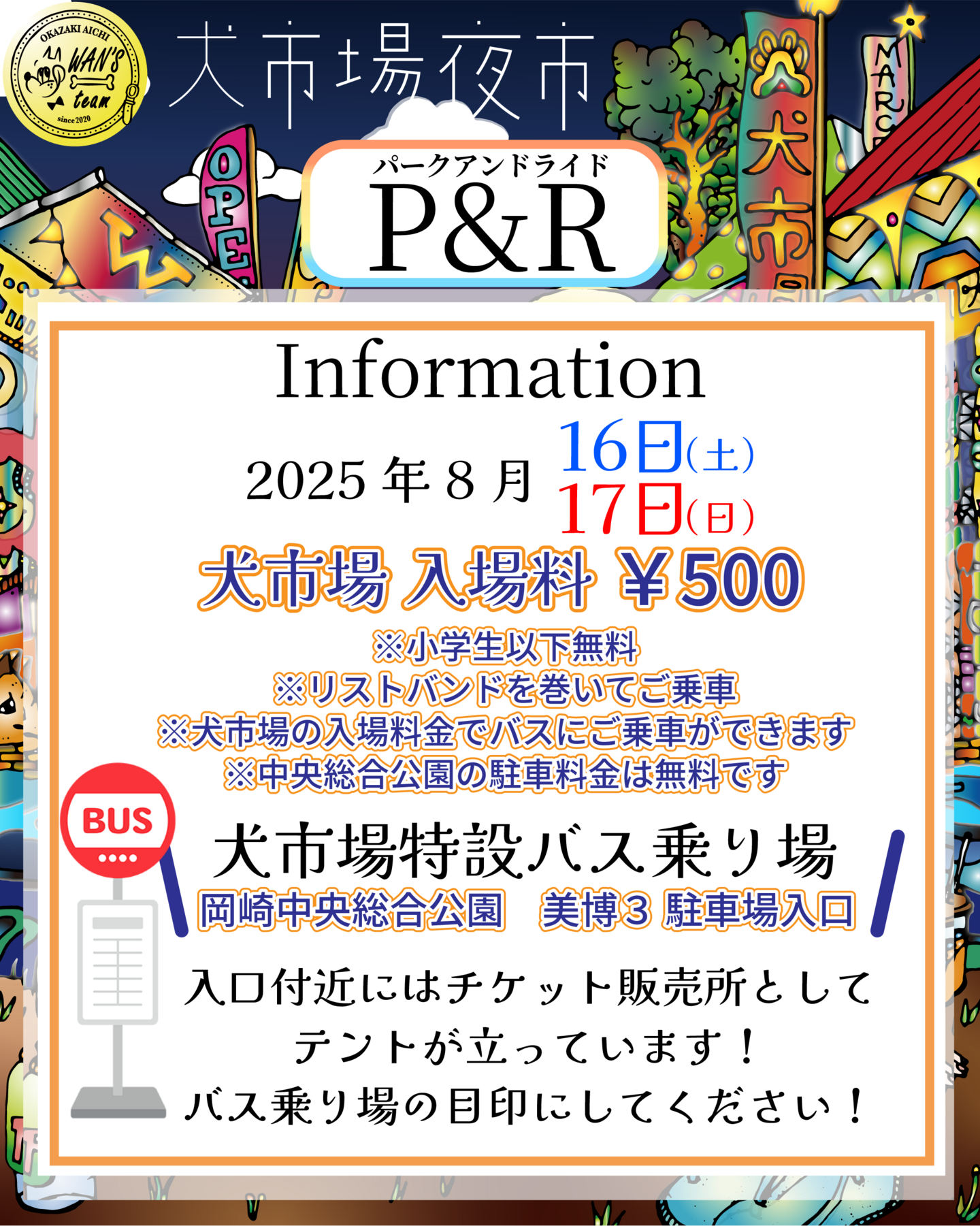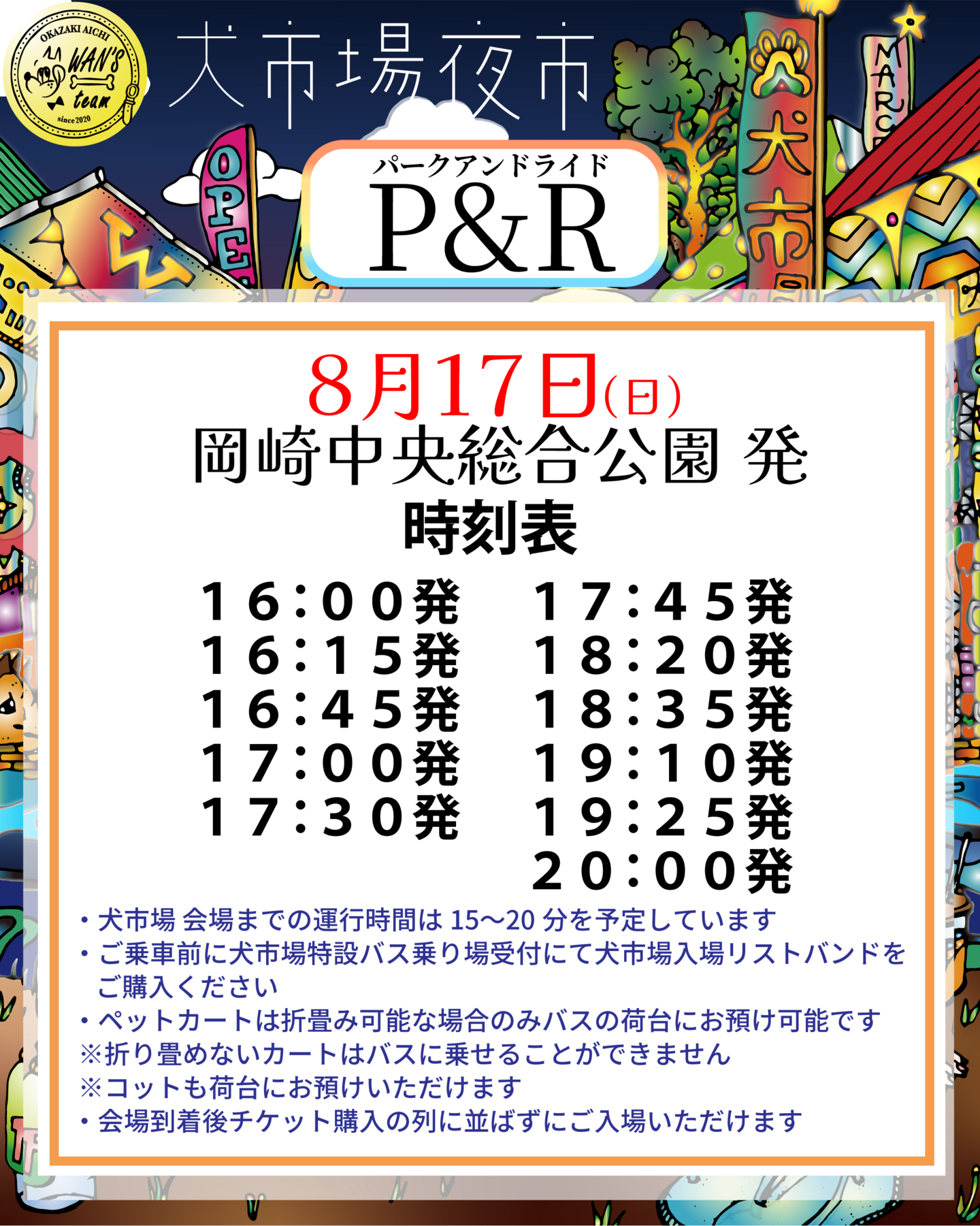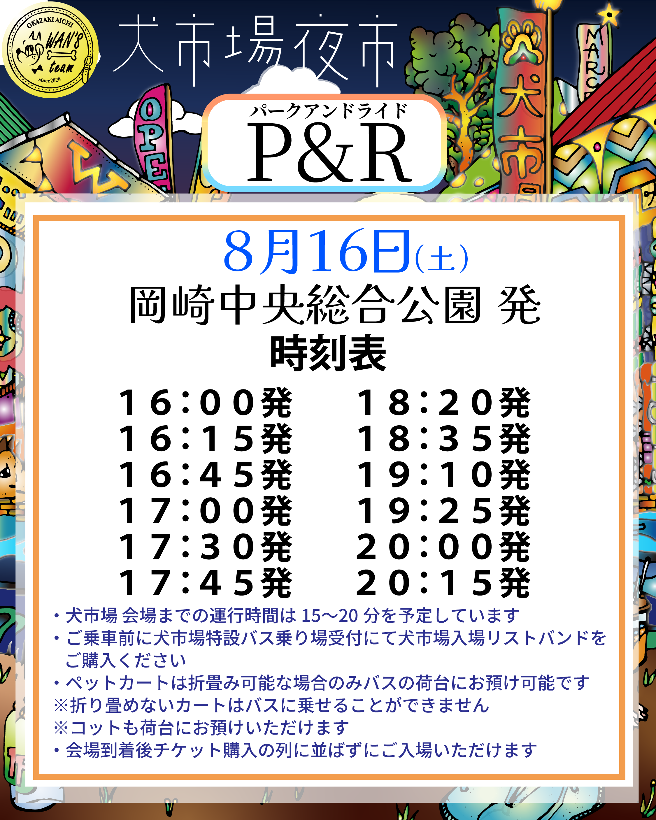 【発】岡崎中央総合公園駐車場(犬市場特設バス乗り場)