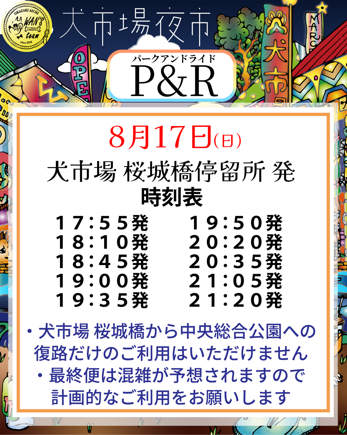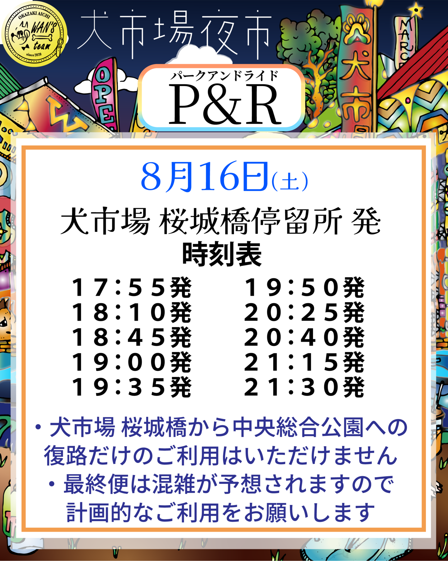 当日は1夜限りということもあり、駐車場の混雑・渋滞緩和のため是非ともご利用いただけましたら幸いです!
