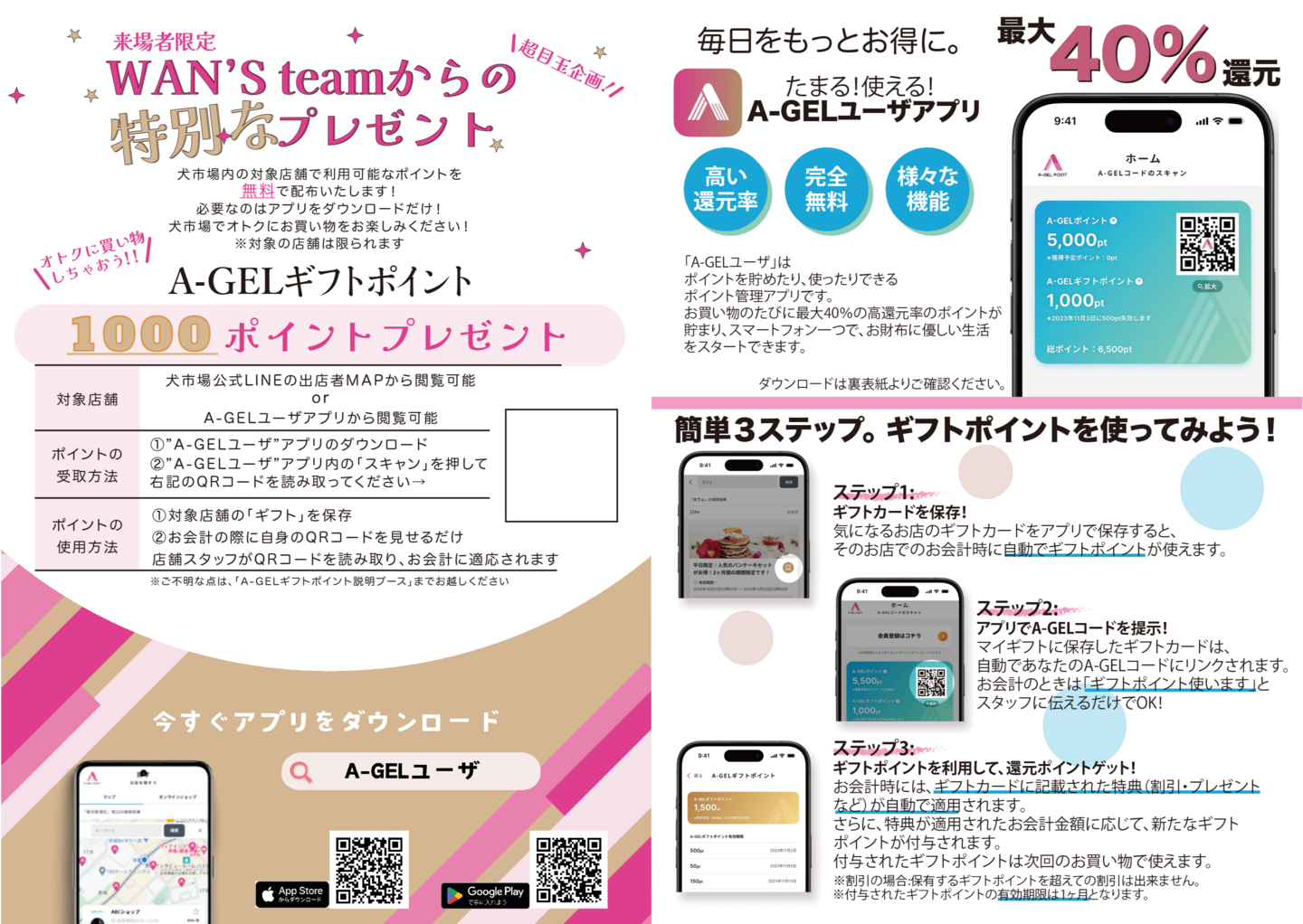 また、夜市ではご来場者さまに限りA-GELギフトポイント 1000円分を プレゼントいたします!